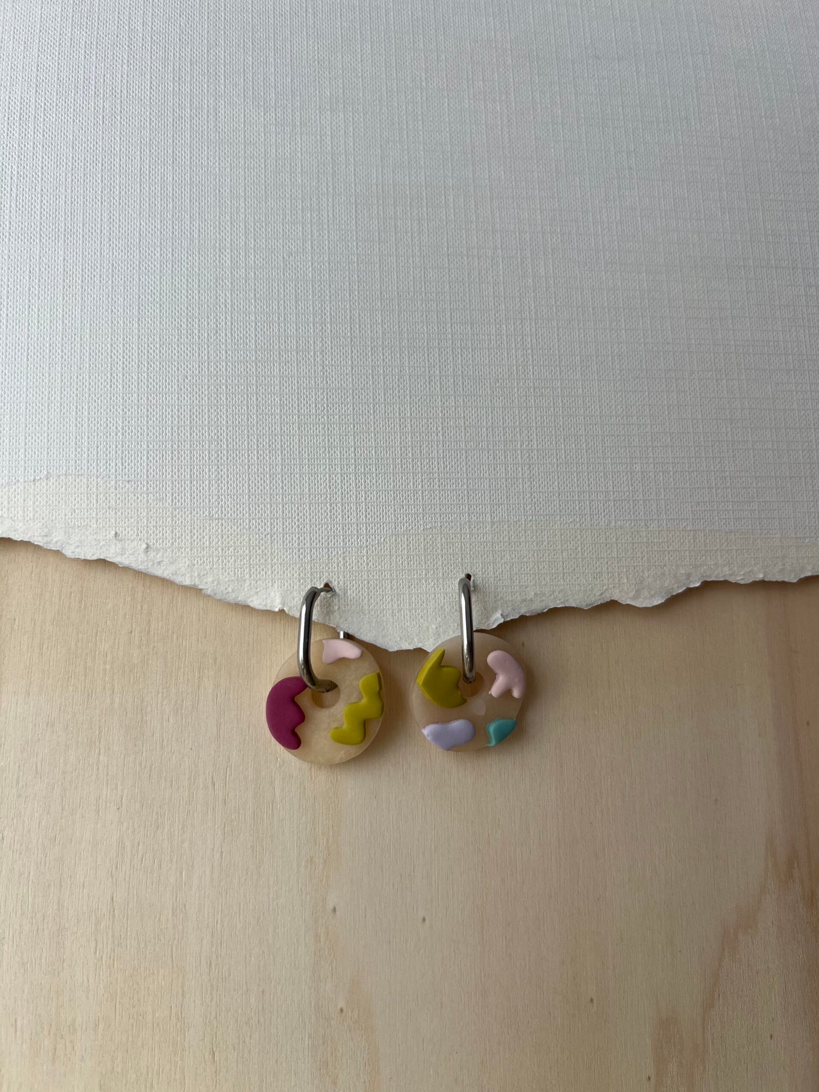 Argolla de acero inoxidable, charm de arcilla polimérica inspirada en una coral
